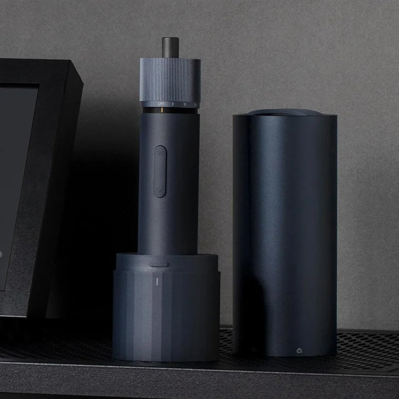 4️⃣ Organisieren und Aufbewahren: Verwenden Sie den mitgelieferten Zylinder aus Aluminiumlegierung zum ordentlichen und praktischen Aufbewahren von Bits und Schraubendrehern.