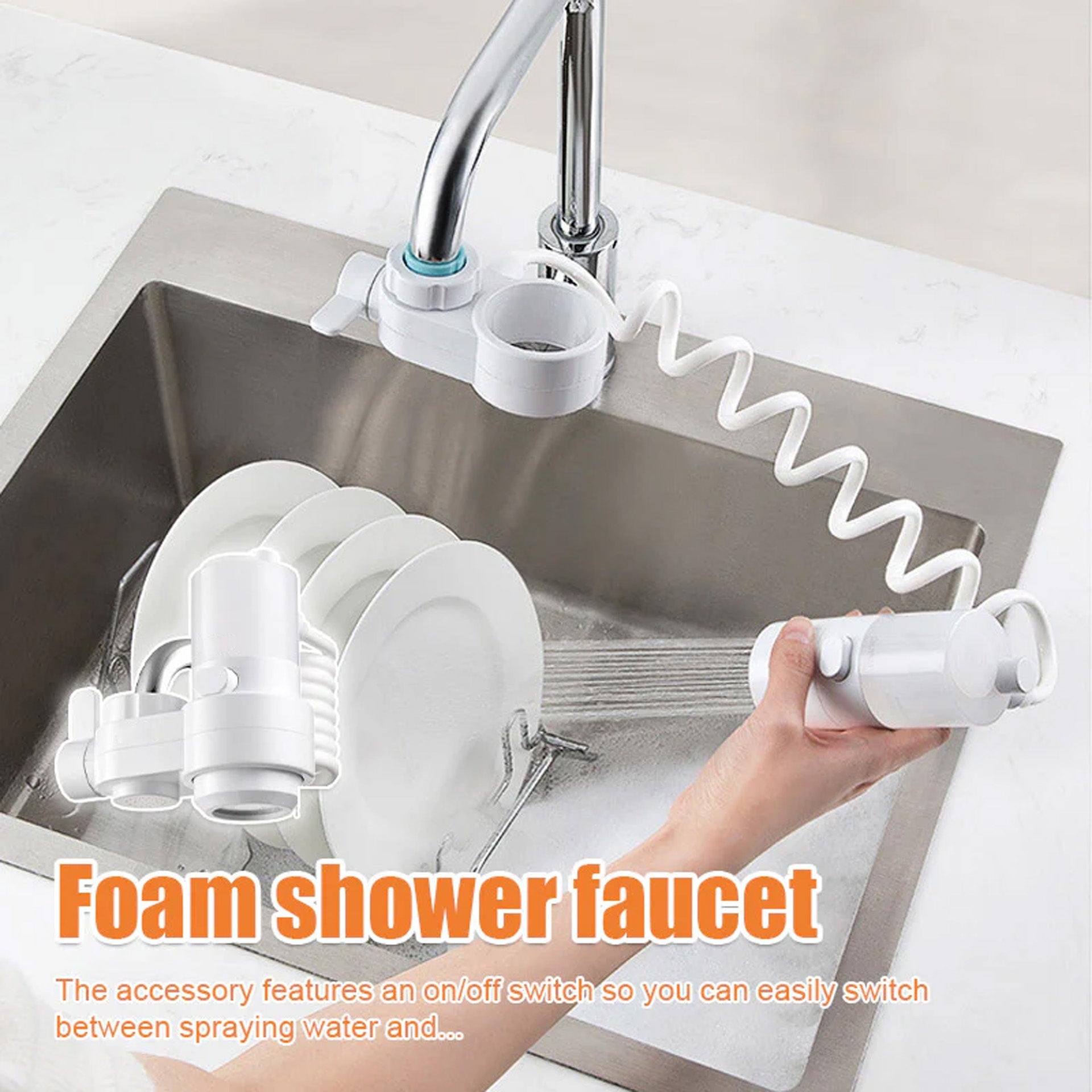 Und der Wechsel zwischen Schaum und sauberem Wasser ist so einfach wie das Drehen eines Knopfes. 💧🔄🧼